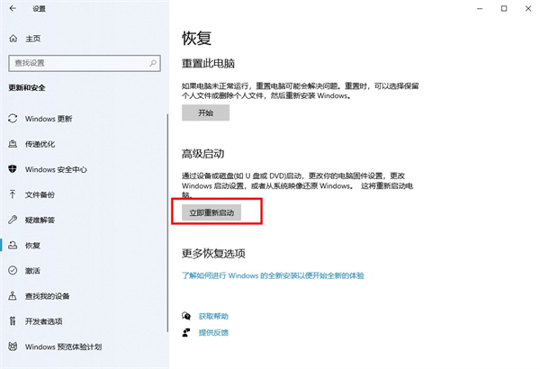 第二步、注意这一步将会重启电脑。点击高级启动的立即重启 —— 疑难解答 —— 高级选项 —— UEFI固件设置 —— 重启后即可成功进入bios。
