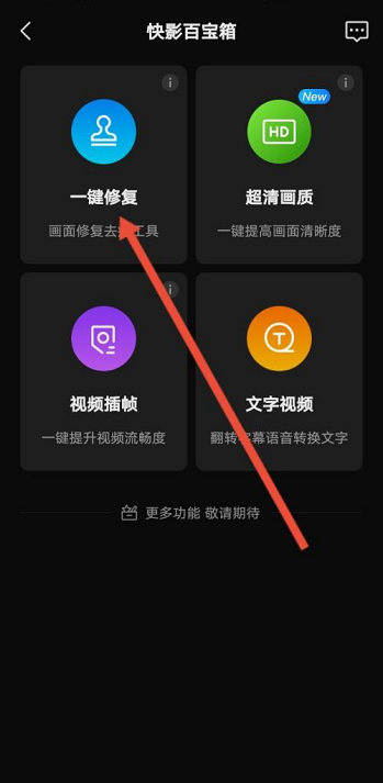 第一步:首先打开手机上的快影,点击百宝箱功能。