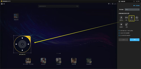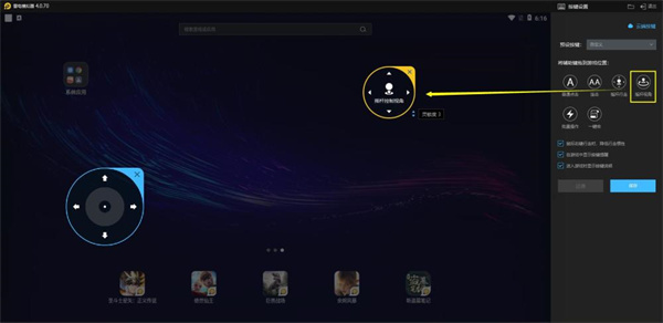 设置方式:鼠标移动到功能区的方向键上左键长按拖动到游戏的方向按键位置。