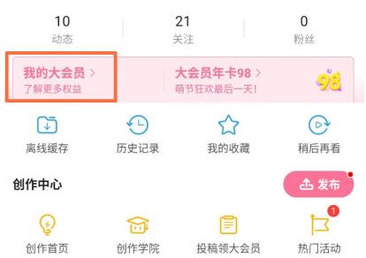 2、第二步:进入个人界面后在头像下方点击【我的大会员】;