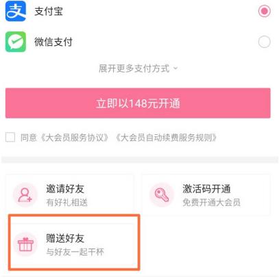 3、第三步:进入支付界面后点击下方【赠送好友】;