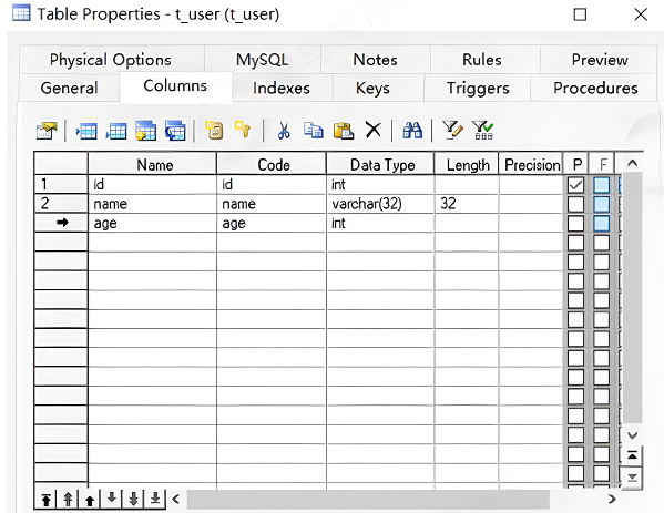 5、随后创建字段,可以设置三个字段,id主要以int为类型,也可以去添加多个字段。
