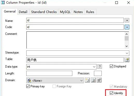 6、再选中id字段右键,勾选右下角的第二个选项。