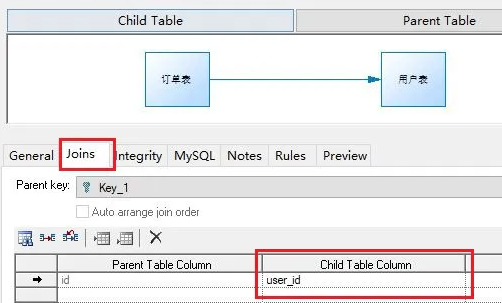 9、此时需要将光标从右侧订单表向左侧的用户表拖拽移动。