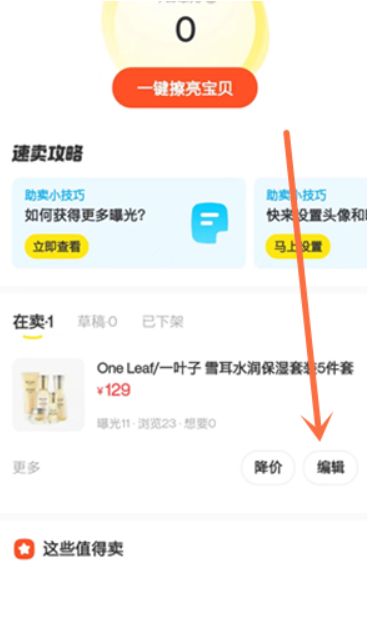2、第二步:在【在卖】一栏点击【编辑】;
