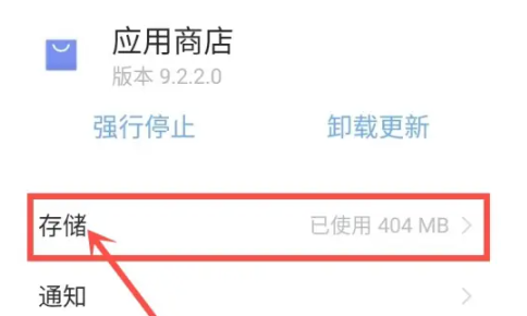 2、在应用信息页,点击"存储"选项。