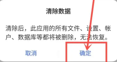 4、点击"确定"按钮,清除应用数据后,即可恢复网络连接。