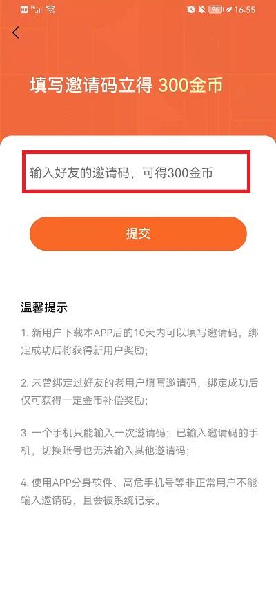 3、第三步:输入邀请码内容之后点击【提交】就可以了。