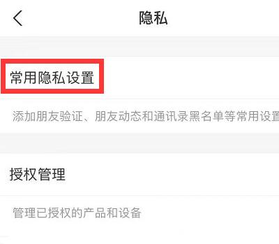 4、点击“常用隐私设置”