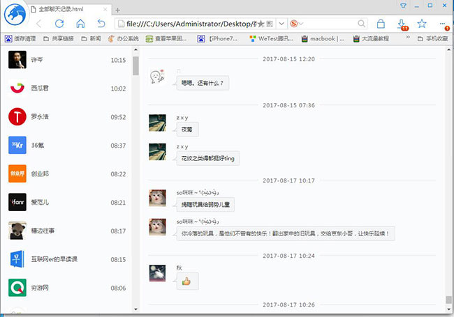 7、导出html格式聊天记录,记录中的文字、图片、视频、语音等均能正常显示。