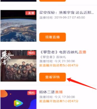 3、第三步:正在进行中的直播直接点击【观看直播】没有的话点击【查看详情】