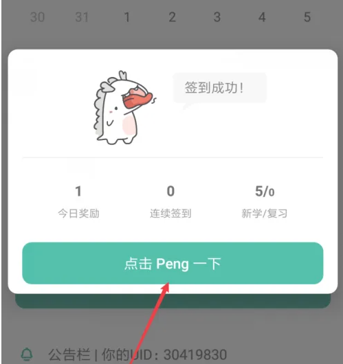 进入界面,签到成功,点击peng一下按钮。