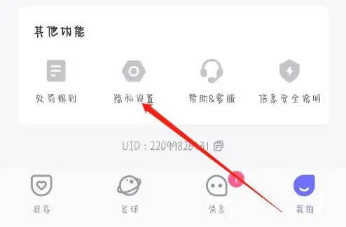 如图所示选择【隐私设置】点击进入;