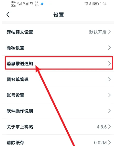 第二步:进入设置界面,点击【消息推送通知】进入,如图所示。