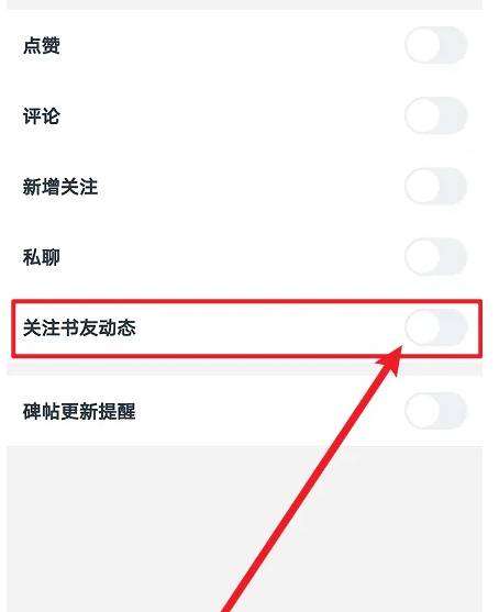 第三步:进入消息推送通知设置界面,开启【关注书友动态】即可,如图所示。