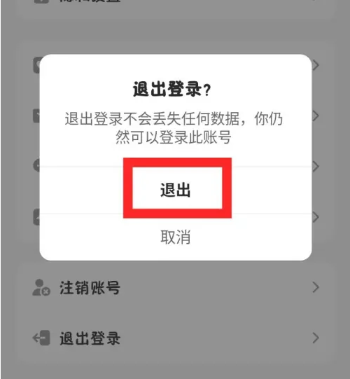 进入设置页面,点击【退出登录】。