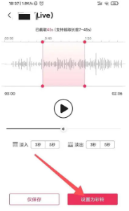 截取片段并设置彩铃:选择要截取的歌曲片段,选取后点击设置为彩铃。