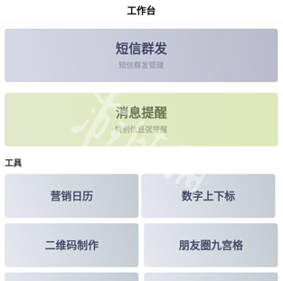 3、接着点击工作台,用户可通过该软件群发短信,并且其他工具可使用。
