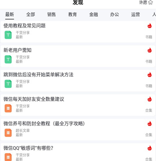 4、点击【发现】功能,可以看到很多干货分享,用户可随时点击了解。