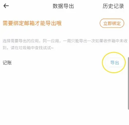 进入数据导出点击记账右侧的导出即可