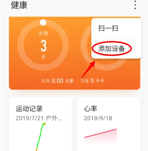 在小米手机上使用华为手环,需要安装华为运动健康和华为移动服务。安装后,打开运动健康应用并登录,点击右上方三个点的图标。