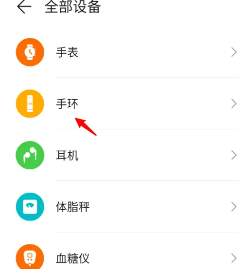 在设备界面,点击手环的选项进入。