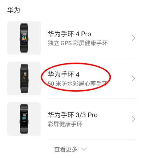 进入后,根据自己华为手环的型号,选择匹配的型号进入。
