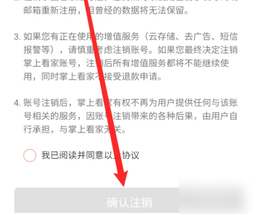 进入注销协议界面点击‘确认注销’