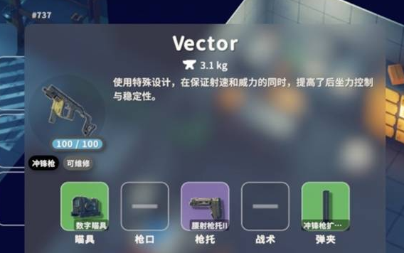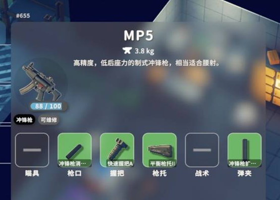 描述:换弹速度快,持续伤害能力相当不错的制式冲锋枪,但射程相对有限。