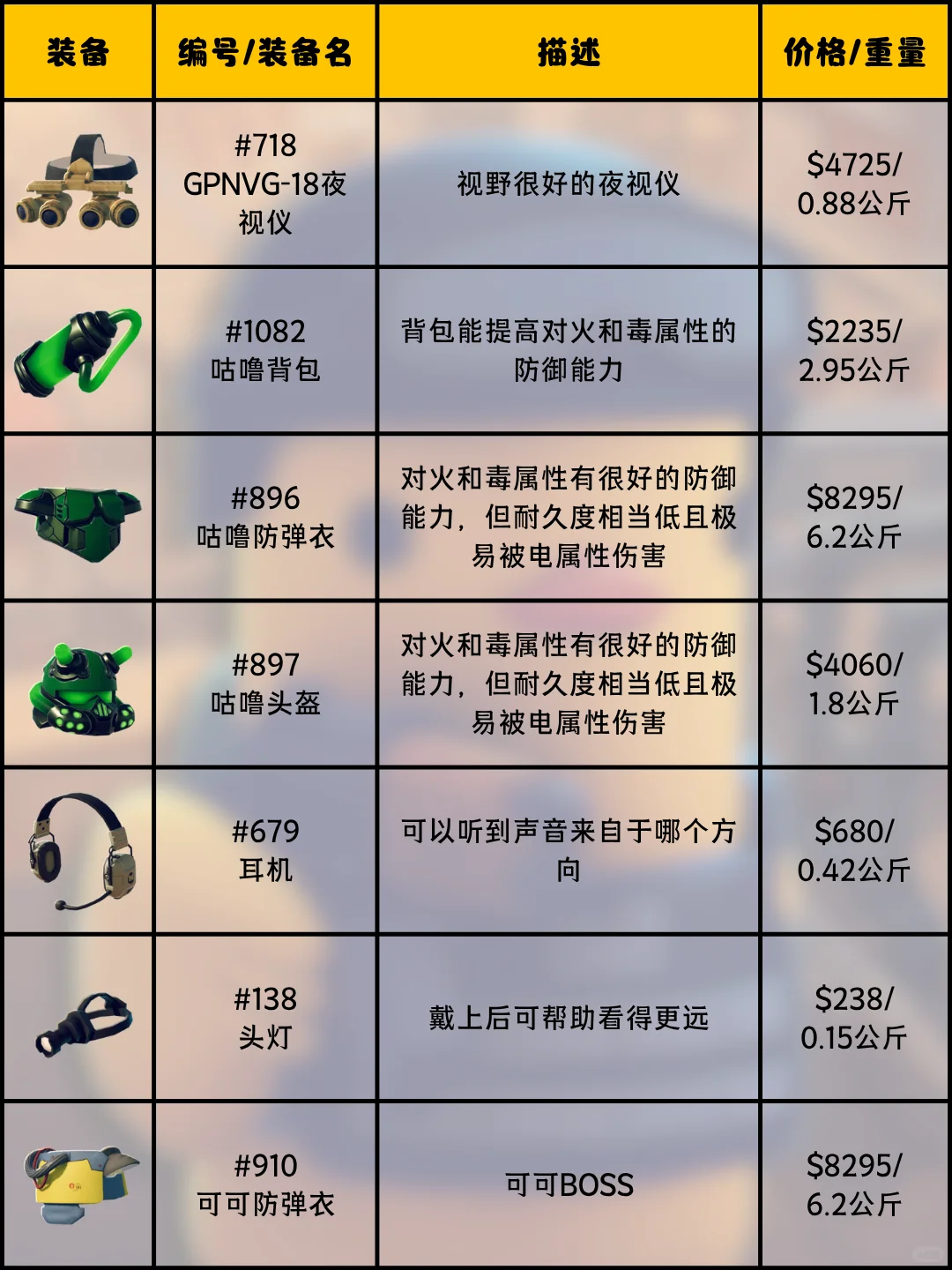 逃离鸭科夫游戏中存在大量装备防具,包括头部装备、身体防具以及一些背包之类的用品,装备性能上有很大的区别。这些装备如果不使用的话还可以选择出售,出售价格各不相同。