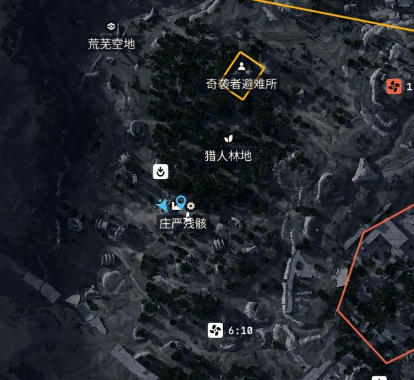 在荒芜空地,地图当前人物位置处的一个白色关节