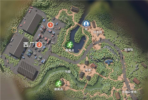 沿着主道走到标点5伐木场,拿到【伐木场水塔样本】和【MF蓝图碎片2】,标点6是第二个油罐车位置,沿路线走到标点7找到仓库区的钓鱼点。