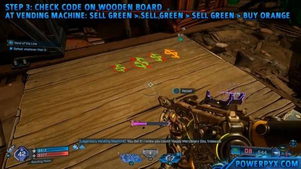 击败BOSS贩卖机赞恩后,检查进入洞穴时BOSS最初所在的位置,在木板上可以看到3个被划掉的绿色【$】图标和1个未划线的橙色【$】图标,此处标记表示需要在此贩卖机出售3件绿色物品,并购买1件传奇物品。