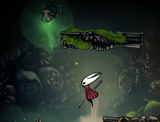 位于苔穴的西南区域。接到任务之间向左边走,然后根据平台一路向右上角跳,就在房间的右上角。