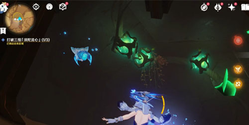 6.利用四叶印往上,打破第一组「须陀流心」,里面还有三个绿球