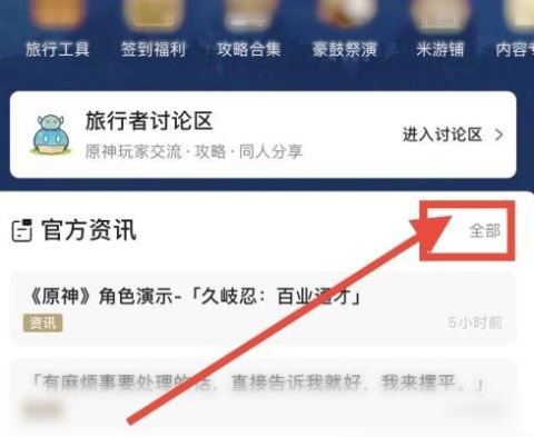 3、首页点击【官方咨询】右侧的【全部】按钮。