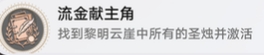本篇为大家分享崩坏星穹铁道3.2版本的流金献主角成就完成方法,成就要求玩家周到黎明云崖的所有圣烛并且全部激活,一共有四个圣烛。