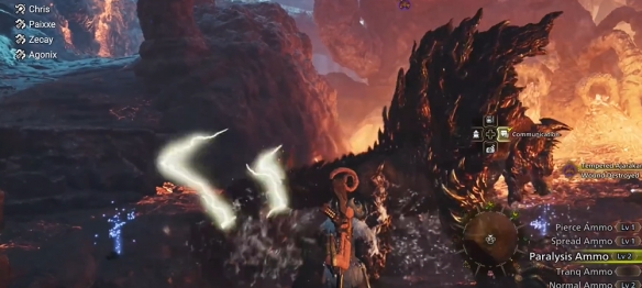 赫猿兽到脸上后先来一发麻痹弹,并用轻弩的地雷来增加一些额外伤害,队友同时输出。