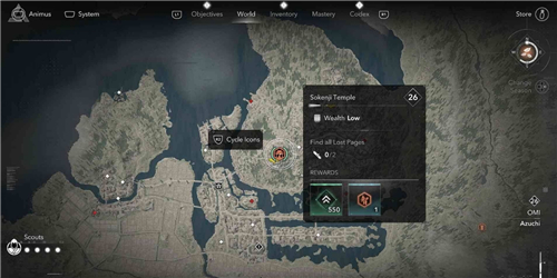 本篇为大家分享刺客信条影近江地区总见寺的失落的卷页的收集位置,总见寺位于安土,这里一共有2个失落的卷页。