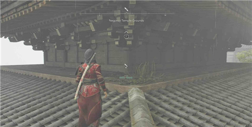 在寺院东北角的屋顶下方