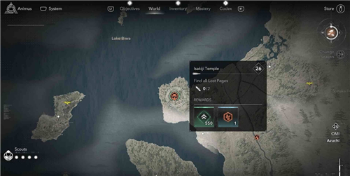 本篇为大家分享刺客信条影近江地区伊崎寺的失落的卷页的收集位置,伊崎寺位于安土,这里一共有2个失落的卷页。