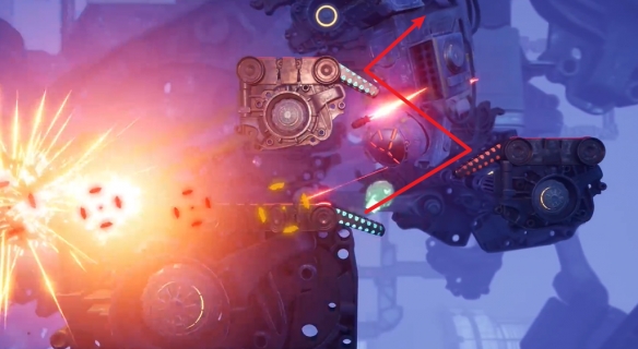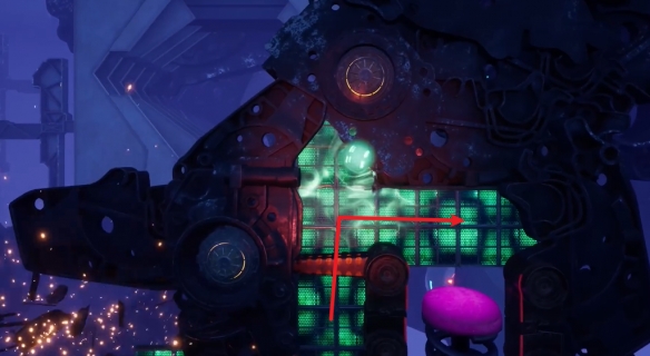 这里要先把BOSS给吸出来,之后利用场景中机关破坏最顶上的装置。