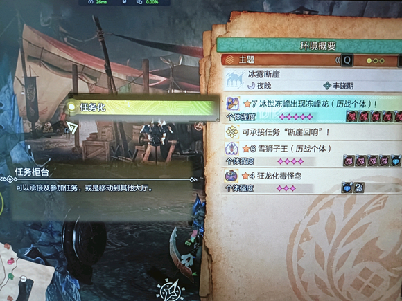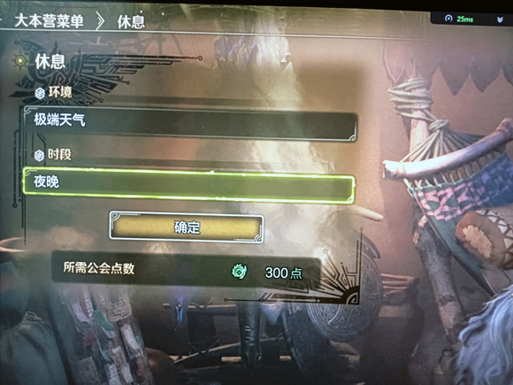 首先进入个人帐篷找到进餐页面下的休息,选择极端天气的夜晚能最大概率出现高星任务