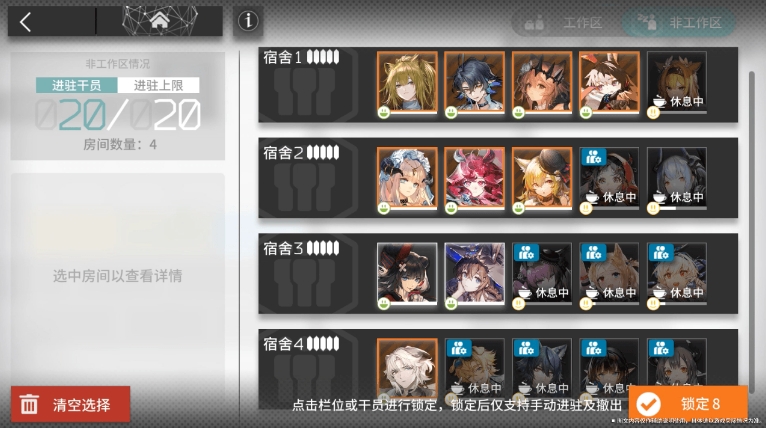 宿舍干员锁定