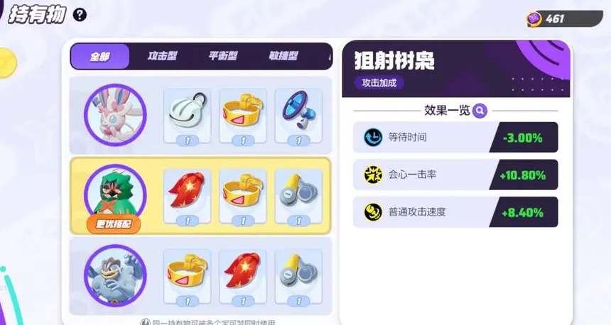 宝可梦大集结狙射树枭持有物带什么