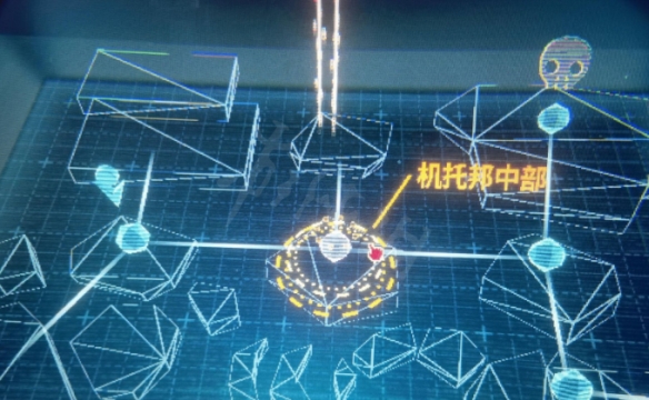 1、如图所示,这个就在图中的机托邦中部位置。