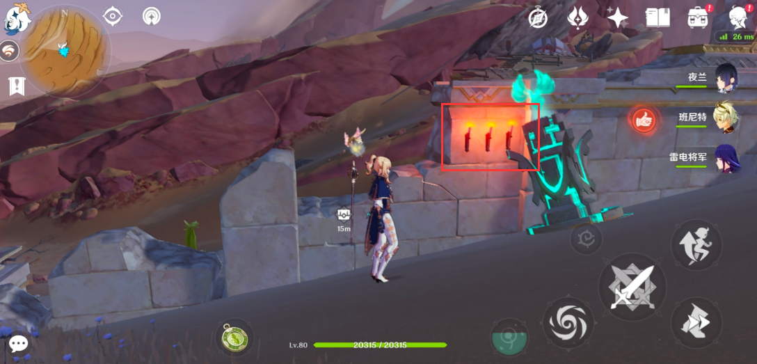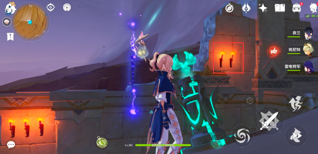 2、可以看墙面上火把的状态,第一个是熄灭的。