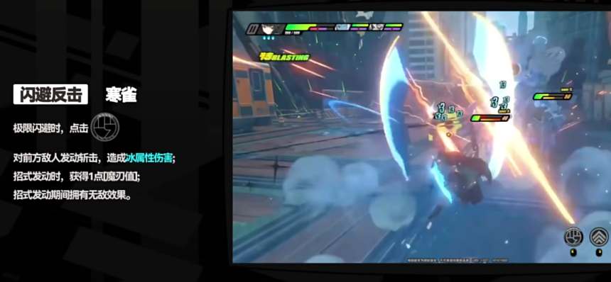 消耗能量对前方直线区域敌人发动强力斩击,造成大量冰属性伤害。自身获得1点魔刃值。