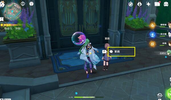 1、首先玩家需要将游戏内的时间调整到第二天即可自动接取任务与门口的茉莉对话。