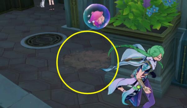 2、接着先使用水元素或者风元素将门口的尘土清理掉。